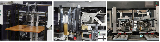การควบคุมโดยอัตโนมัติโดย PLC; อุปกรณ์สําหรับความเร็วสูง stacking ของกระดาษกระดาษในโหมดไม่หยุด; การแบ่งปันผลิตภัณฑ์รวดเร็วและง่ายและการแปลงเป็นเร็ว; การให้อาหารเทปอัตโนมัติ,การตัดและเล็บสี่มุมพร้อมกัน.